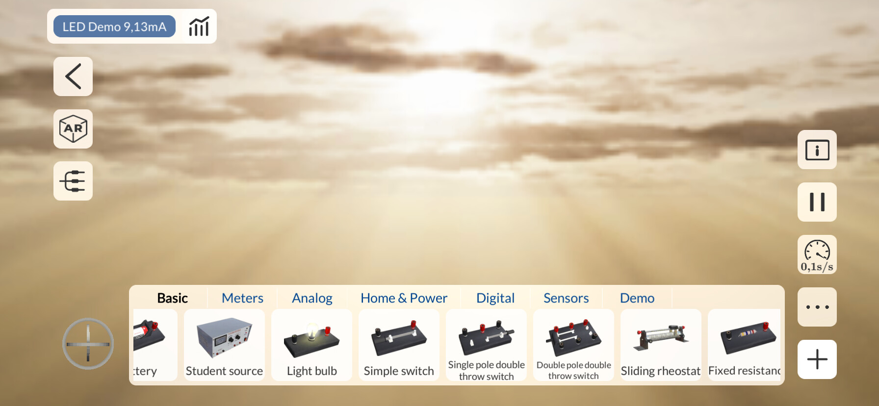 When opening an experiment, your own or created by another user, also if the project is saved to the device itself, then after opening there are no elements on the table (although, for example, the graph of power surges changes) or instead of the room and table I see the sky and the sun (I left the room and came out of the matrix). The camera rotates, or even the sky can turn into a normal room, but there is also nothing on the table. Thank you for attention
